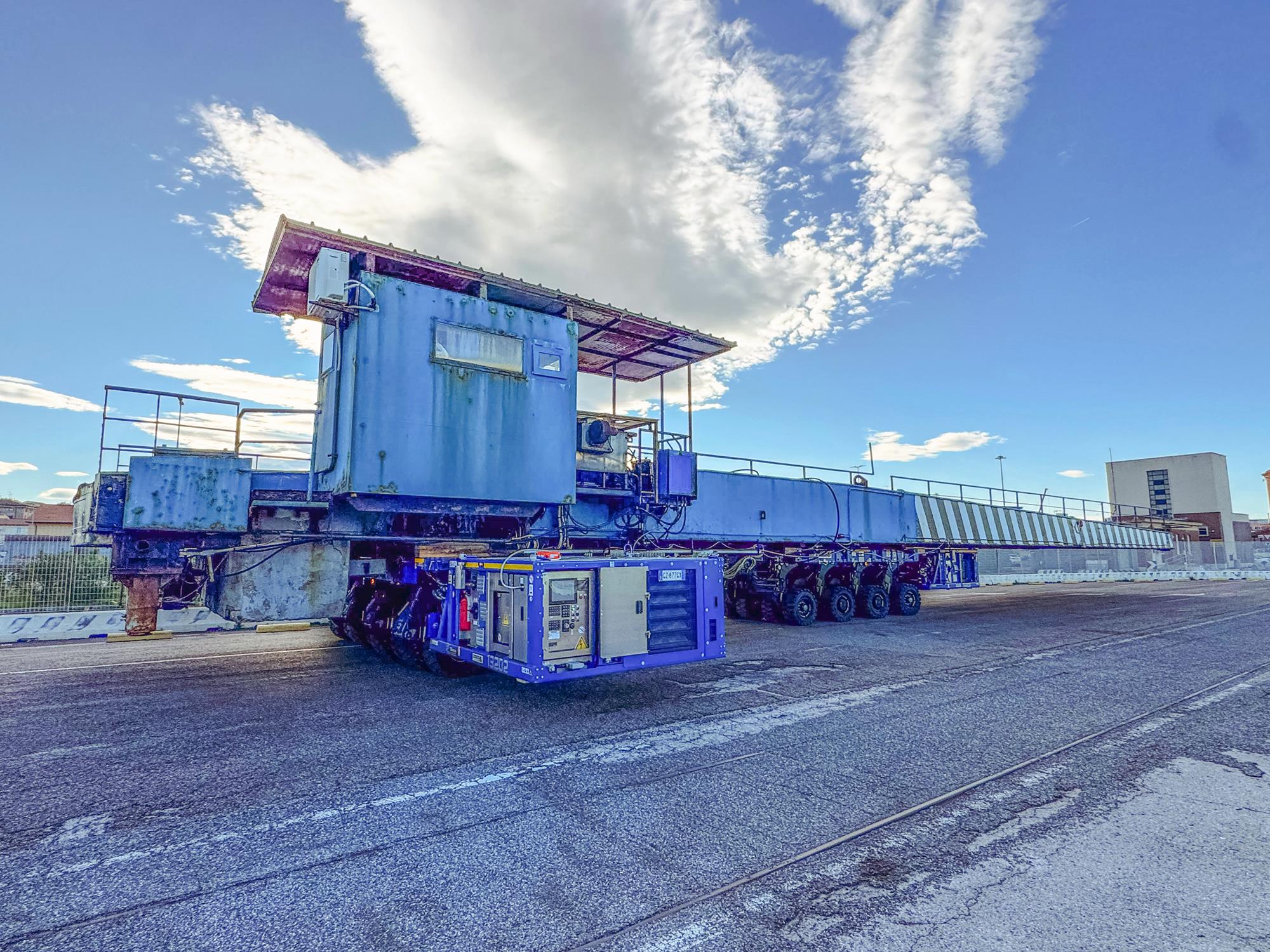 Уникальная сложность этой миссии заключалась в форме груза: один SPMT пришлось установить продольно, а другой — поперечно, чтобы обеспечить идеальный баланс и полный контроль во время перемещения.